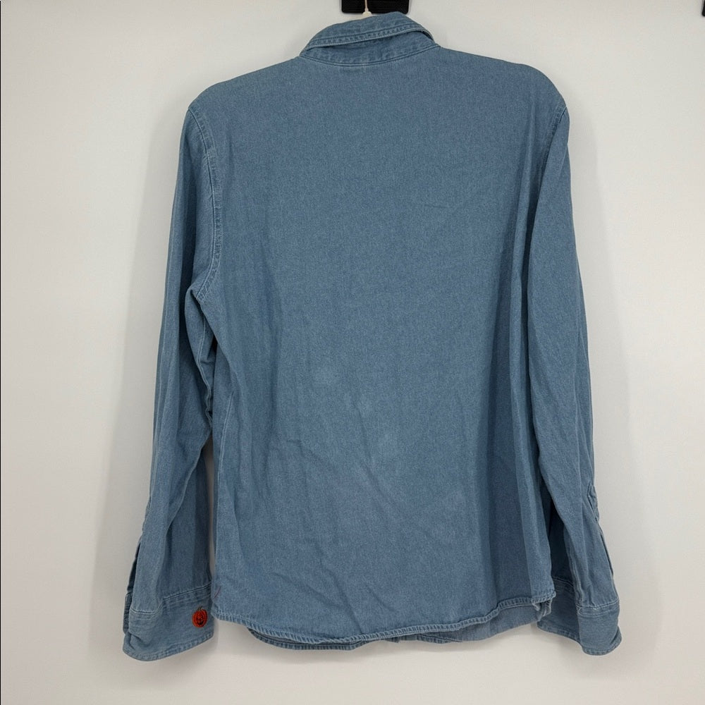 Vintage Fall Creek Halloween Embroidered Denim Shirt Ghost Witch Pumpkin Size L